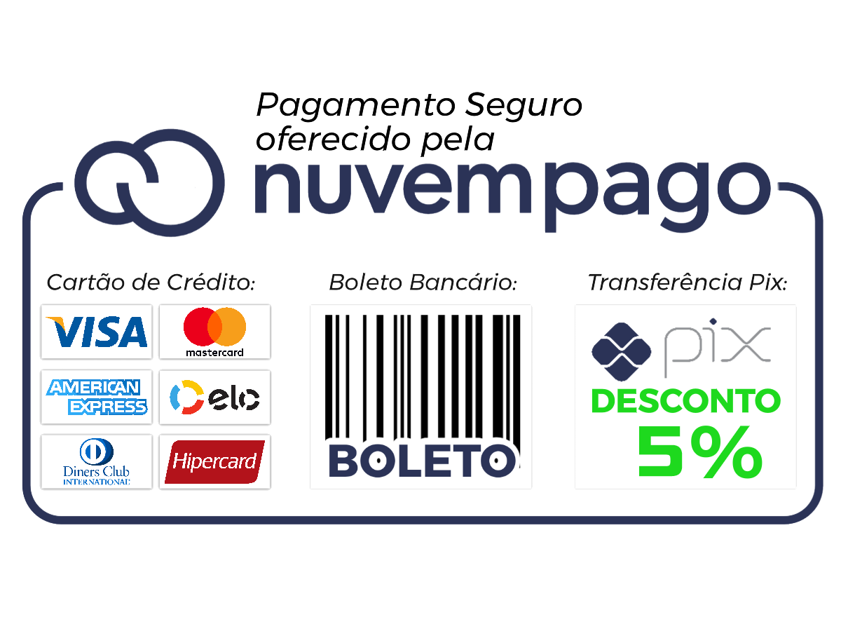 >> Processo de pagamento totalmente seguro, por PIX, boleto bancário, débito online ou cartão de crédito, através do Nuvem Pago.